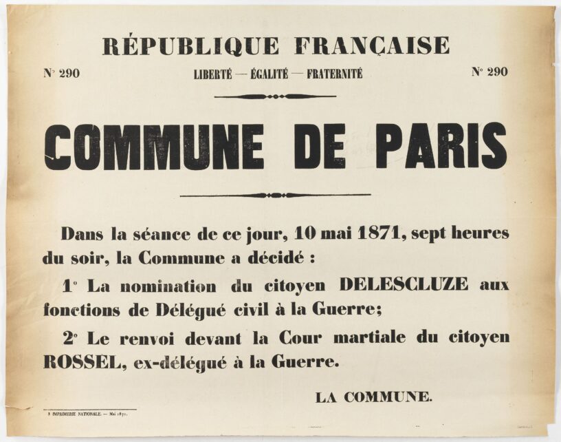 … et d’abord des nouvelles de Louis Nathaniel Rossel, dans l’affiche de couverture (qui vient toujours du musée Carnavalet). Et de Charles Delescluze, qui devient le premier civil délégué à la Guerre de la Commune. Et puis, de Parisiennes et Parisiens plus anonymes.
