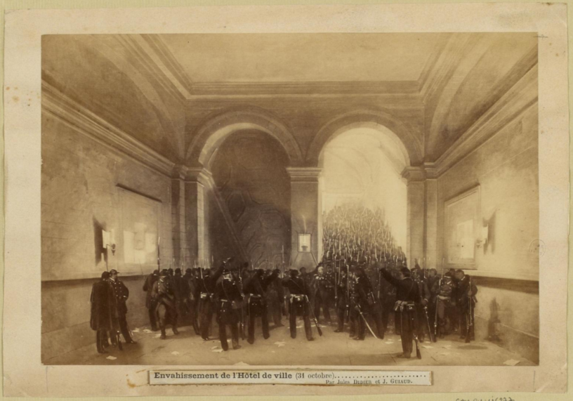 La « photographie » (c’est un montage, une reconstitution) représente « l’envahissement de l’Hôtel de Ville le 31 octobre » (je vous laisse reconnaître les bataillons…), elle est au musée Carnavalet.