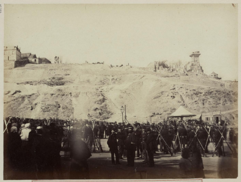Voir des détails sur la place Saint-Pierre dans notre article d’avant-hier. L’adresse rue des Rosiers va devenir célèbre — la rue des Rosiers de Montmartre a subsisté à l’annexion de la commune à Paris en 1860, de sorte qu’il y avait (au moins) deux rues « des Rosiers » à Paris — puisque c’est là que seront, dès après-demain après-midi, exécutés deux généraux, et que, à la fin du mois de mai, on y fusillera des dizaines d’hommes, femmes et enfants, dont Eugène Varlin — en « représailles ».