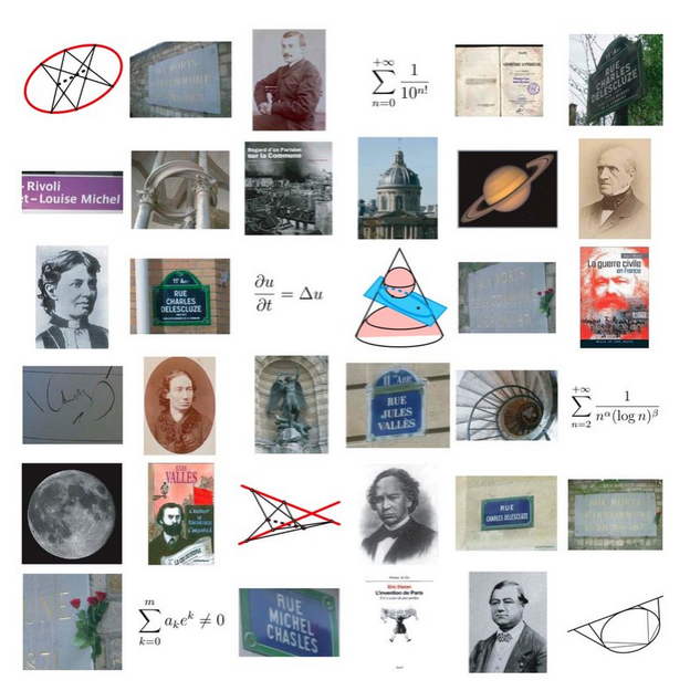 En parlant de calendriers, les lundis, qui étaient les mêmes en 1871, étaient alors les dates des séances de l’Académie des sciences, ce qui me permet de vous renvoyer à Mai quai Conti, un texte que j’ai écrit à ce sujet (l’Académie des sciences et la Commune) et que l’on peut lire sur le site de l’Oulipo. L’image qui sert de couverture à cet article est une sorte de « résumé » de ce texte, en forme de sextine, ce qui est expliqué au début de Mai quai Conti.