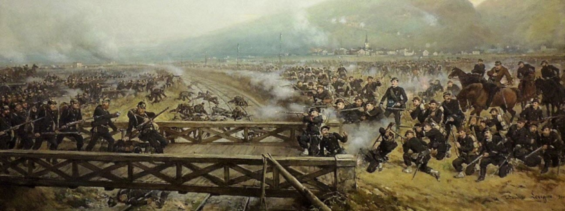 Le 18 décembre 1870 a lieu une grande bataille à Nuits-Saint-Georges. Un peu plus glorieuse pour l’armée française que bien d’autres. Un tout jeune général, Camille Cremer (un peu malmené par Gustave Flourens dans notre article du 17 décembre) s’y est « illustré ». Le tableau utilisé en couverture est dû à Théodore Levigne, qui était un des combattants, et, si je comprends bien, il est au musée de Nuits-Saint-Georges.