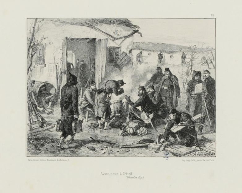L’image de couverture est une lithographie de Clément-Auguste Andrieux, elle s’intitule Avant-poste à Créteil (Décembre 1870) et se trouve au musée Carnavalet.