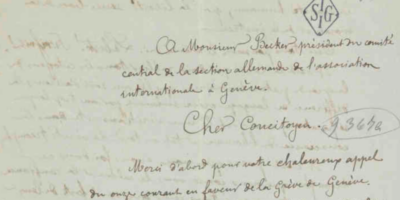 Une lettre de Louis Varlin (30 mars 1868) pendant la grève du bâtiment à Genève