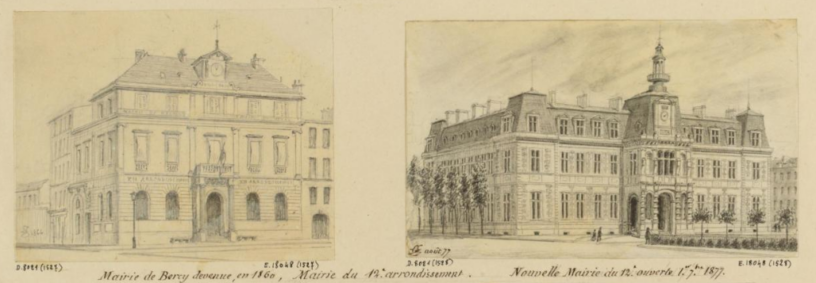 Pour le moment, disons qu’il est onze heures du matin et que nous sommes, pas très loin de là, dans le douzième arrondissement, et précisément à la mairie. C’est l’ancienne mairie de Bercy (que l’on voit à gauche de l’image de couverture, qui vient du musée Carnavalet).