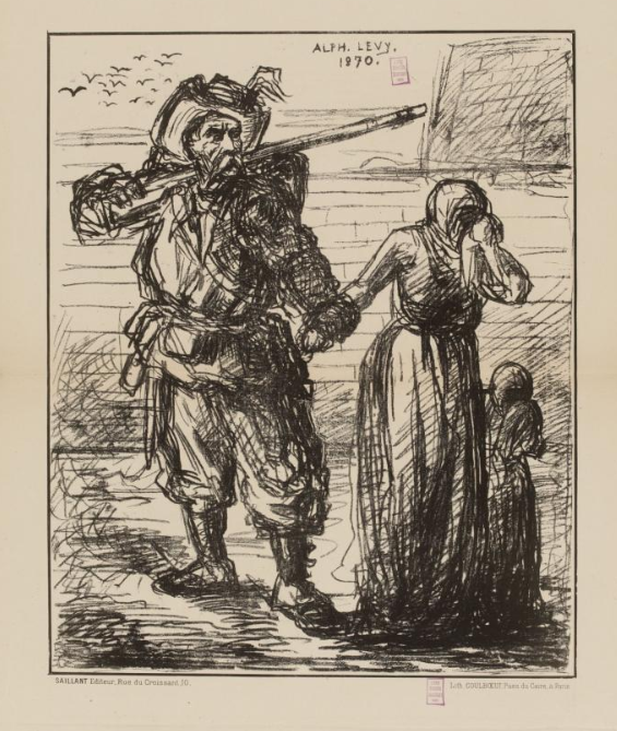 Je doute que le garde national de l’estampe utilisée en couverture ait l’intention de tuer sa femme… mais il y a si peu d’images de femmes… Cette estampe de 1870 est due à Alphonse Lévy, qui l’a signée de son nom et pas du pseudonyme Saïd, qu’il a utilisé aussi. Elle est au musée Carnavalet.