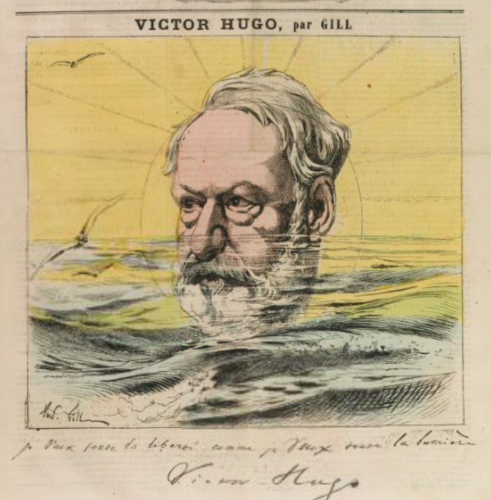 L’hugolâtre André Gill avait mis Victor Hugo, « je veux toute la liberté comme je veux toute la lumière », à la une de La Lune le 19 mai 1867. Il n’y avait plus qu’à aller le chercher sur Gallica, là.