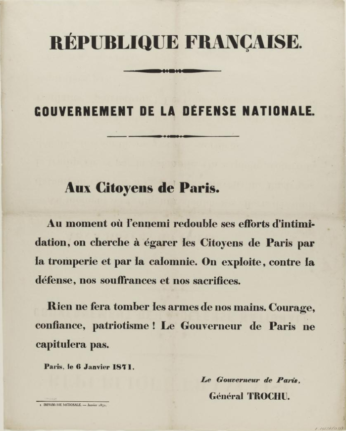 Oui, Trochu, c’est devant Belleville qu’il jure de ne pas capituler!