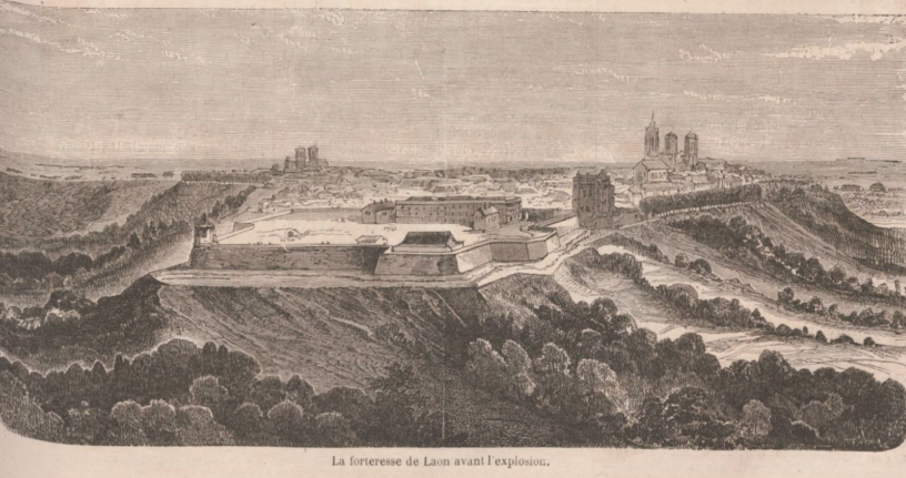 Le 9 septembre, l’armée prussienne a pris Laon. L’image de la forteresse, qui a explosé pendant la bataille, est parue dans Le Monde illustré daté du 17 septembre 1870, elle est donc sur Gallica, là.