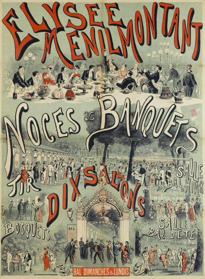 L’image de couverture est une affiche montrant une partie des activités de l’Élysée-Ménilmontant, un haut lieu de la vie publique dans le vingtième arrondissement à cette époque (l’affiche date de 1884, peu de temps après l’histoire racontée dans cet article, et je l’ai trouvée au musée Carnavalet).
