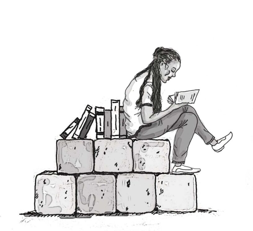 L’image de couverture de cet article est une des variations de la signature des livres de l’éditeur « Le Bas du pavé ». Une barricade-bibliothèque, et une lectrice. L’auteur de ce dessin est Fred Morisse, qui n’est pas sans lien avec cet éditeur.