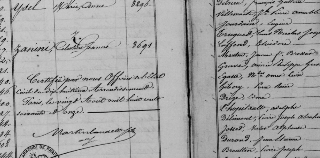 Suite de l’article précédent. Voici donc ce que M. Émile Martin Landelle a écrit dans une marge de la page des décès du 29 mai 1871 — page dont, par ailleurs, il avait bâtonné tous les actes: