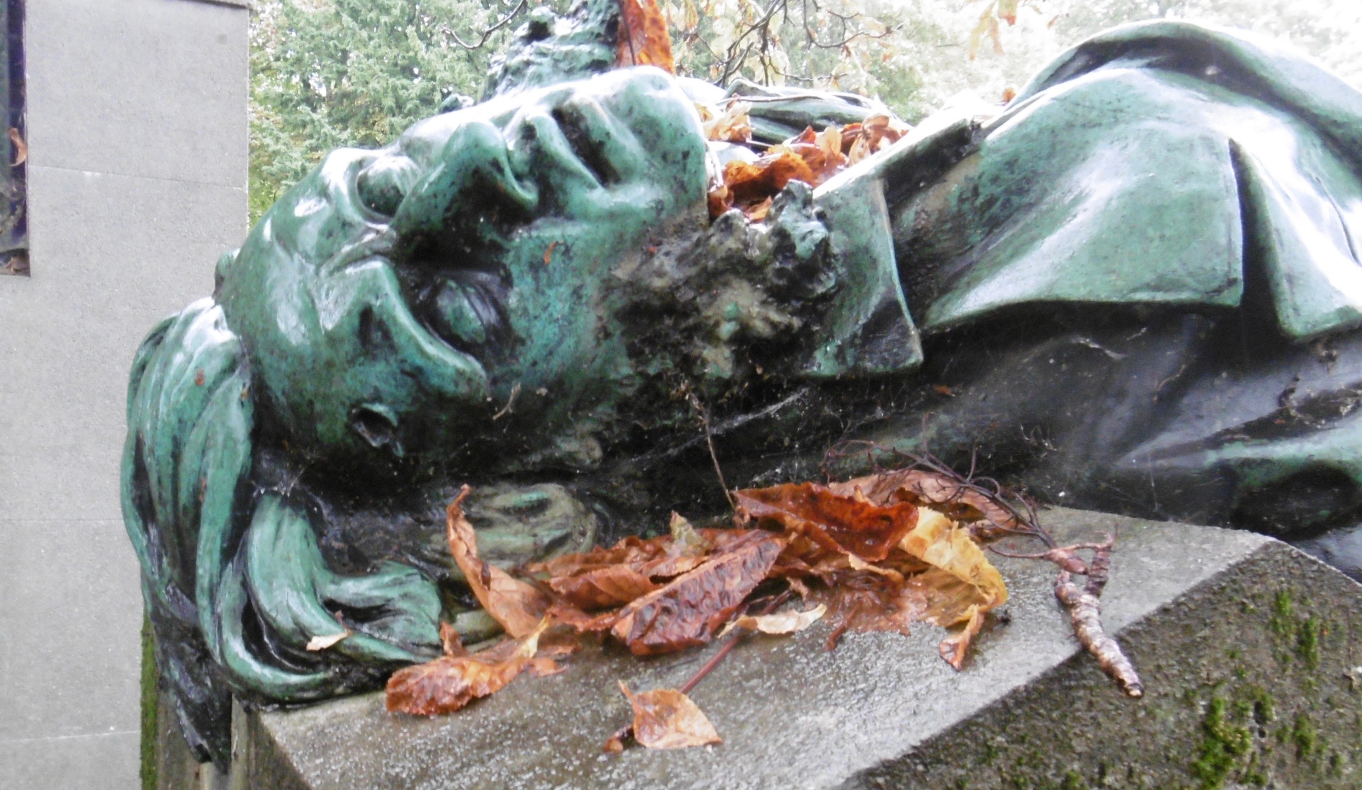 mais je ne me souvenais pas du gisant de Baudin. J’ai eu un peu de mal à le trouver. D’ailleurs, le plan officiel de la ville de Paris indique toute une liste de tombes ou monuments de personnes « célèbres », mais pas Baudin. Je sais bien que les restes de Baudin sont au Panthéon, mais je sais aussi que le gisant est toujours là. Et en plus, il pleuvait de plus en plus fort. Heureusement, il y a un « chemin » Baudin, dans lequel j’ai fini par me frayer un chemin. Et voilà!