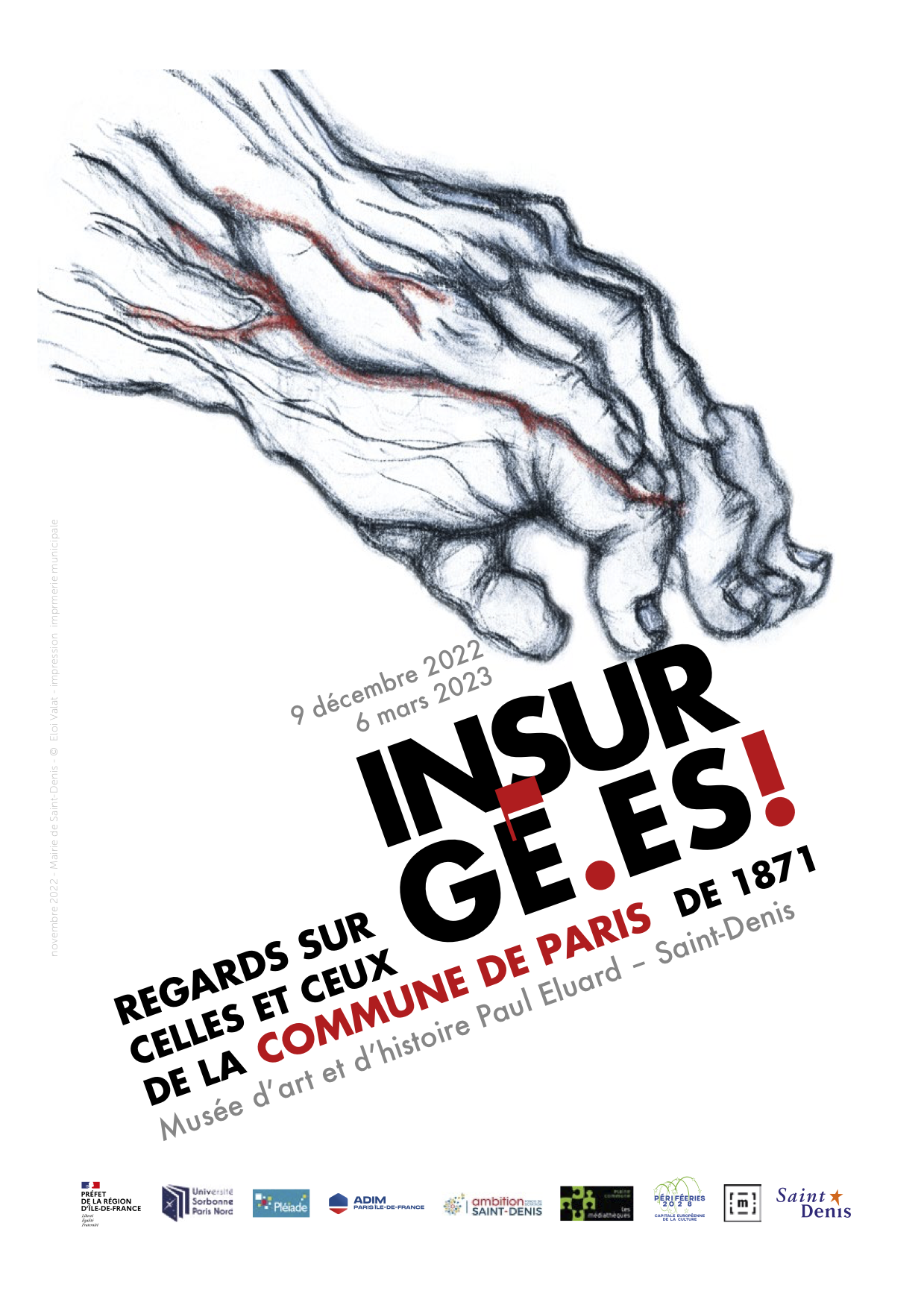 Le musée possède un très riche fonds consacré à la Commune de Paris, j’ai déjà eu l’occasion de le signaler (ici et là, notamment). L’exposition, consacrée à des « Regards sur celles et ceux de la Commune de Paris« , présente — en plus de la collection permanente — de nombreuses œuvres qui ne sont pas toujours exposées, comme le drapeau du 143e bataillon (celui qui est sur la couverture de Comme une rivière bleue, et que je n’avais vu que dans les sous-sols du musée), des dessins d’Ernest-Pignon-Ernest (en préparation de son affichage
