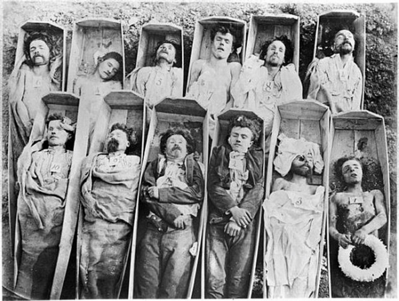 J’ai déjà dit ce que j’en pensais: ce sont des fédérés tués en avril 1871 et photographiés — chacun avec un numéro — avant leur inhumation, pour être identifiés.