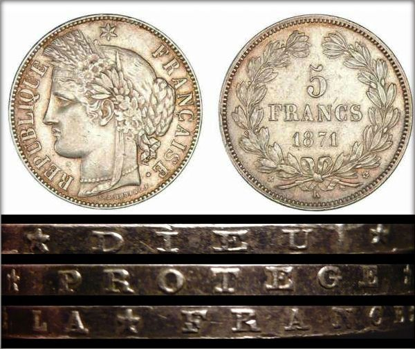 J’ai copié l’image complète de la pièce « Cérès » de 1870 (même si celle de l’image a été frappée en 1871) sur cette page (cliquez) d’un site spécialisé. Que je remercie pour l’autorisation d’utiliser cette image.