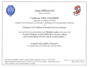 je parlerai d’Eugène Varlin, de l’Association internationale des travailleurs à la Commune