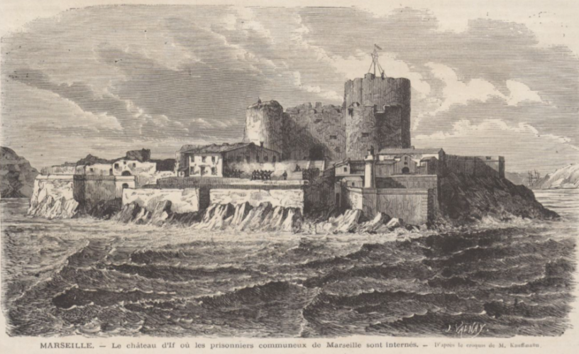 Depuis cette date, les condamnés sont passés dans différentes prisons marseillaises, et notamment, comme l’annonce triomphalement Le Monde illustré daté du 8 juillet, les communeux marseillais sont enfermés au Château d’If. Et ce journal publie sur la même page, d’abord l’image des troupes massacreuses