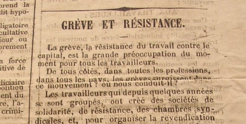 Jusqu’alors nous avons été malmenés, exploités à merci, parce que nous étions divisés et sans force ; aujourd’hui on commence à compter avec nous, nous pouvons déjà nous défendre ; c’est l’époque de la résistance. Bientôt, quand nous serons tous unis, que nous pourrons nous appuyer les uns sur les autres, alors, comme nous sommes les plus nombreux et comme, après tout, la production tout entière est le résultat de notre labeur, nous pourrons exiger, en fait comme en droit, la jouissance de la totalité du produit de notre travail, et ce sera justice.