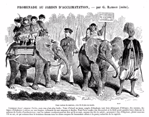 Remue-ménage complet au Jardin des Plantes. On diminue les espaces où se promenaient jadis les divers animaux, pour faire des enclos destinés aux bêtes du Jardin d’Acclimatation. On y a déjà installé les éléphants, les singes, les chevaux nains et les autruches.