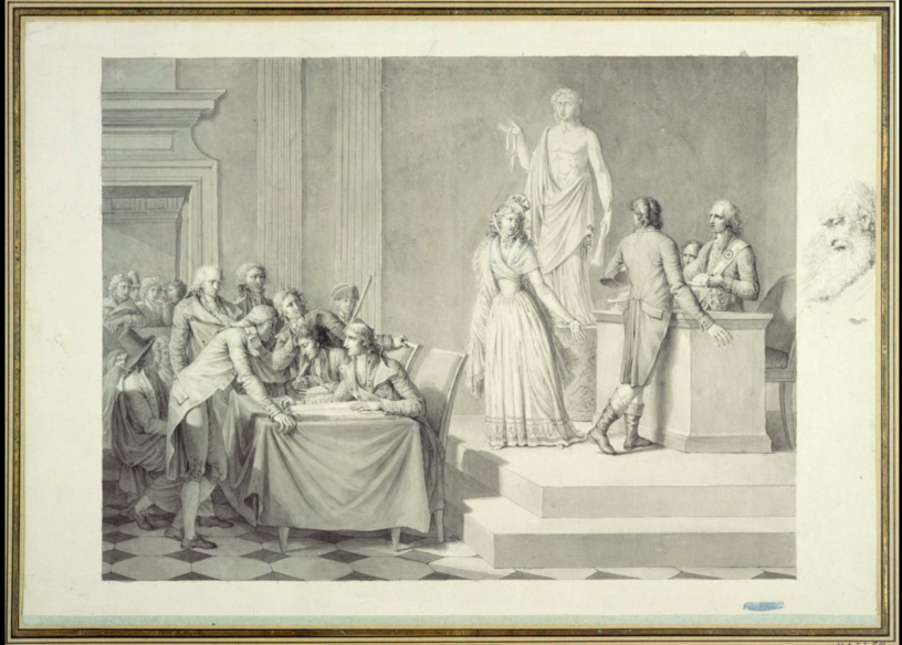Le dessin à la plume de Jean-Baptiste Mallet s’intitule « le divorce républicain » et vient tout droit du musée Carnavalet.