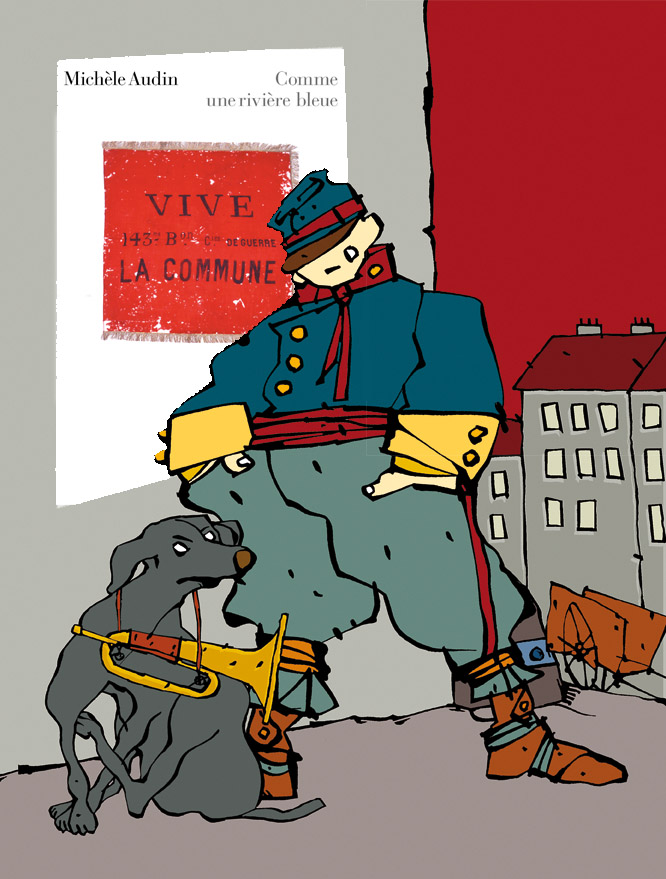 Celui-ci, celui du 143e, est à Saint-Denis. Il n’est pas exposé actuellement dans la magnifique collection sur la Commune du musée, mais j’ai eu la chance d’être invitée à aller le voir dans les réserves, il y a quelques jours, le 31 août 2017. Grâce à la photographie utilisée sur la couverture de Comme une rivière bleue, qui en fait un peu « mon » drapeau.