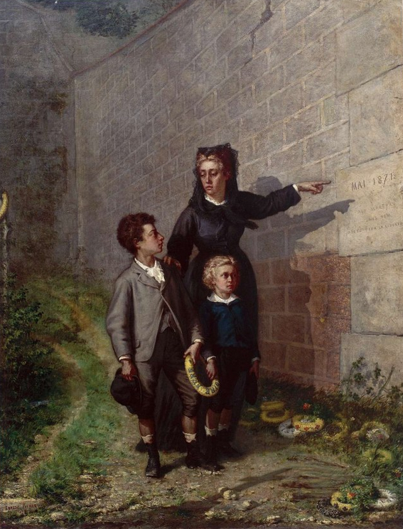 La reproduction d’une lithographie du « Triomphe de l’Ordre » figurait en couverture d’un article précédent consacré au « Mur ». C’est un autre tableau de Pichio (peint en 1877) que j’ai utilisé cette fois (il était d’ailleurs lui aussi reproduit dans le même article). La lithographie est au Musée d’art et d’histoire de Saint-Denis, « La Veuve du fusillé » au Musée de l’histoire vivante de Montreuil.