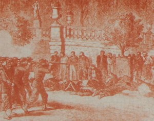 La Commune de Paris n’a pas vraiment été une « révolution sans images ». Il y a eu des images d’actualités dans la presse (réactionnaire) française et peut-être davantage dans la presse anglaise — celle du Luxembourg ci-dessus vient d’un journal anglais. Mais Raphaël Meyssan n’utilise pas que des illustrations de presse. L’évêque de Belley qui accueille Lavalette en fuite, après la Semaine sanglante, possède des chandeliers qui vous rappelleront peut-être ceux d’un autre évêque dans un (autre) roman… Victor Hugo, en vers et en prose, est d’ailleurs mis plusieurs fois à contribution dans Les orphelins de l’histoire.