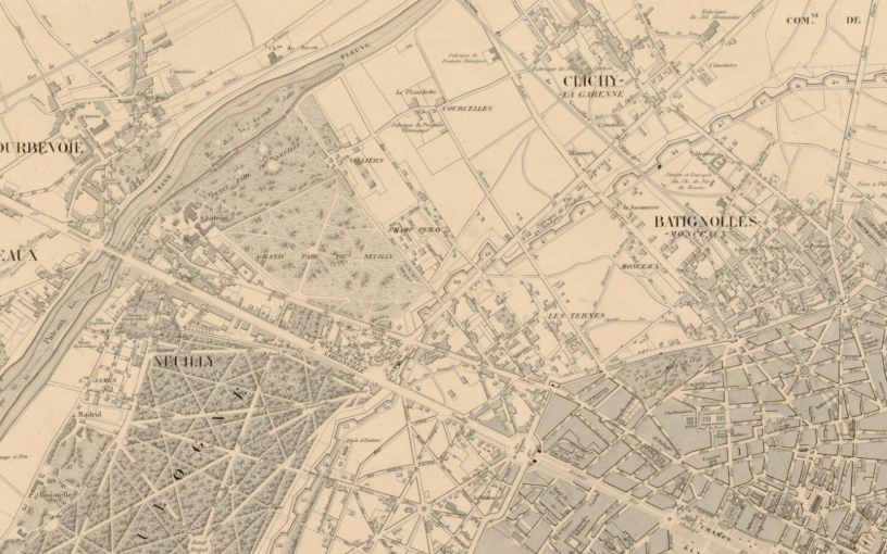 Levallois, cette fois (même si le nom n’est pas indiquée), et le trou blanc à l’ouest de Clichy qui est sans doute la plaine noire où Alix a eu peur, toujours sur le même plan, qui vient toujours de Gallica.