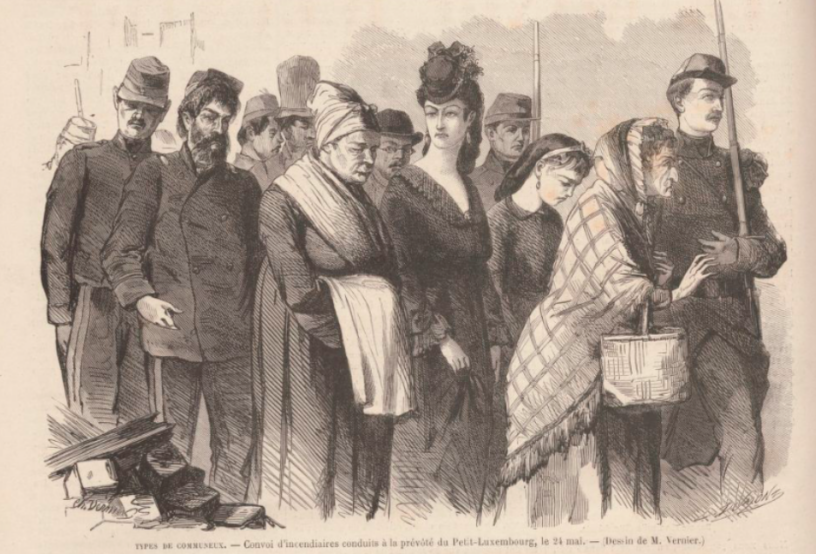 L’image de couverture représente des « incendiaires » emmenés, non au Châtelet mais au Luxembourg. Elle est parue dans Le Monde illustré du 17 juin 1871, et ce journal est sur Gallica, là.