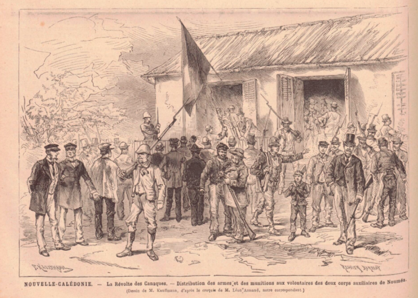 Je n’ai pas eu le courage de reproduire les images (françaises, coloniales) d’époque de l’insurrection kanak. Celle que j’utilise comme couverture ne montre que des « blancs » et vient du Monde illustré du 28 septembre 1878 (n’hésitez pas à suivre le lien et à tourner les pages!).