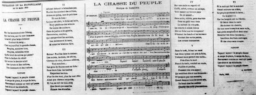 c’est dimanche et, comme promis, « La Chasse du peuple », de Mathieu (un poème de 1852), s’étale à la place du feuilleton ;