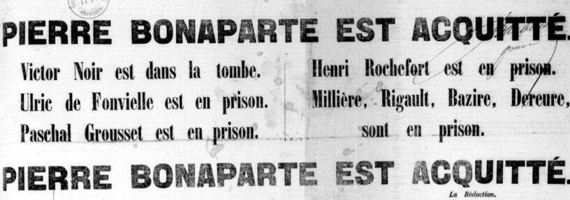 l’audience à Tours prend encore un peu de place, Bonaparte est acquitté, il offre 20,000 francs pour les pauvres de Tours, il a quand même privé la famille Noir (Salmon) de son soutien, le jury délibère à nouveau, le condamne à payer 25,000 francs de dommages et intérêt aux époux Salmon, condamne ceux-ci aux frais de l’instance criminelle et Bonaparte aux frais de l’instance civile ;