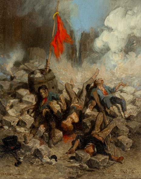 Le tableau d’Adolphe Hervier, La Barricade, Juin 1848, que j’ai utilisé comme image de couverture, est au musée d’Orsay.