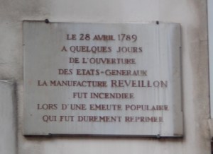 bien édulcoré sur la plaque (31 bis rue de Montreuil), puisque « populaire » est pour « ouvrière », qu’il s’agissait d’une émeute de la faim et que la « dure répression » fut un authentique massacre (de 25 à 900 morts, selon les sources). La plaque suivante (9 rue de Reuilly) est un hommage plus acceptable, à un révolutionnaire bourgeois, Santerre,