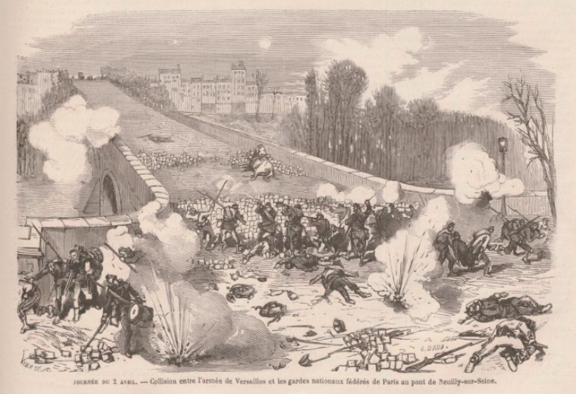L’image de couverture vient encore une fois du Monde illustré, numéro du 8 avril 1871, elle représente le début des hostilités, le 2 avril au pont de Neuilly.