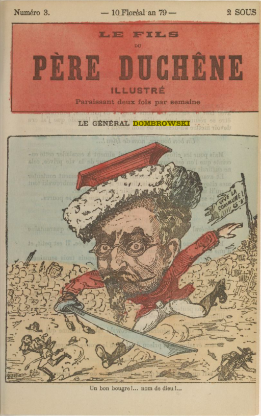 On peut aussi remarquer que Dombrowski, qui, bizarrement, ne figurait pas dans les images de 1871, est arrivé lui aussi dans la mémoire visuelle. Le portrait (sur notre affiche) est inspiré de cette photographie