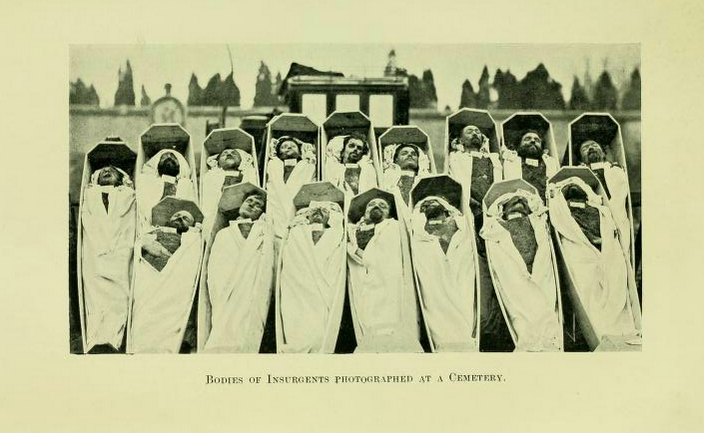 est beaucoup moins courante (car qui va lire Vizetelli?) — évidemment, après cette publication, elle pourrait être, elle aussi, copiée-collée… Mais quelle est sa source? Disdéri, comme le suggère Quentin Bajac dans La Commune photographiée? Où l’auteur du livre l’a-t-il trouvée? Que représente-t-elle précisément (date exacte, après Buzenval ou pendant la Commune? dans quel cimetière)?