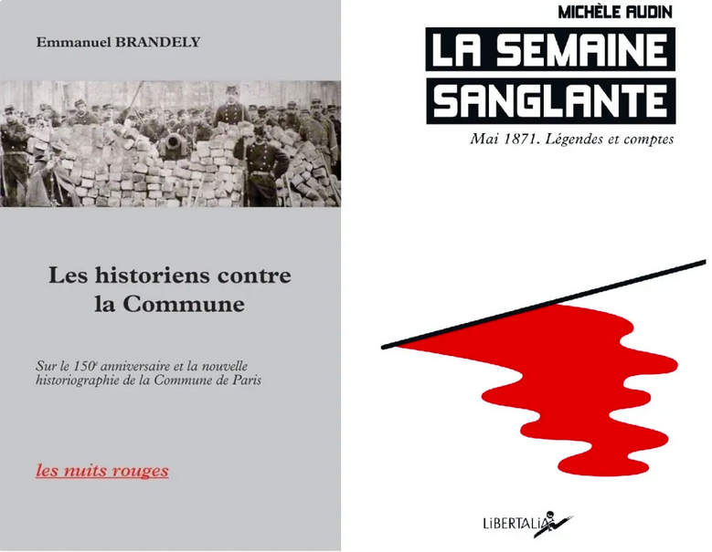 J’interromps l’histoire de Marcellienne Expilly pour une page de publicité. J’ai déjà parlé sur ce site, de nombreuses fois, de mon livre La Semaine sanglante, paru en 2021 chez Libertalia. J’ai parlé aussi, une seule fois parce qu’il est plus récent, du livre Les historiens contre la Commune, d’Emmanuel Brandely.