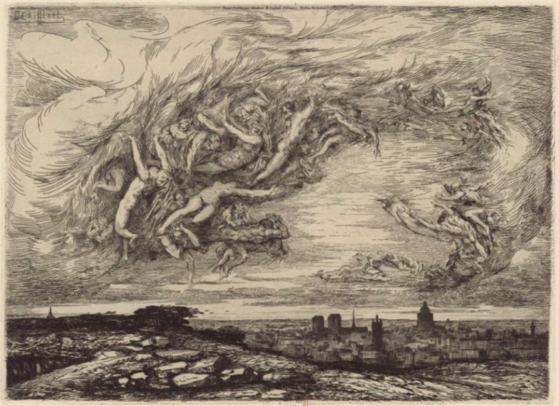 François-Nicolas Chifflart, qui n’a pas de rue à son nom à Paris, est pourtant l’auteur en 1865 de l’estampe Le Choléra sur Paris que j’ai choisie comme couverture de cet article (et que j’ai trouvée sur Gallica, là).