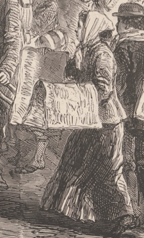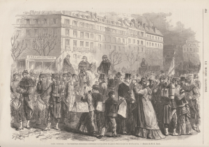 dessinée par Janet, gravée par Morel, et parue dans le Monde illustré le 30 décembre 1870, et qui est une des images utilisées par Raphaël Meyssan dans son livre. Cette image… et l’autre crieur de journaux, le garçon (oui, Raphaël Meyssan l’a reconnu, et peut-être vous aussi, c’est le petit logo des éditions Maspero!). Je remercie Raphaël pour son aide.