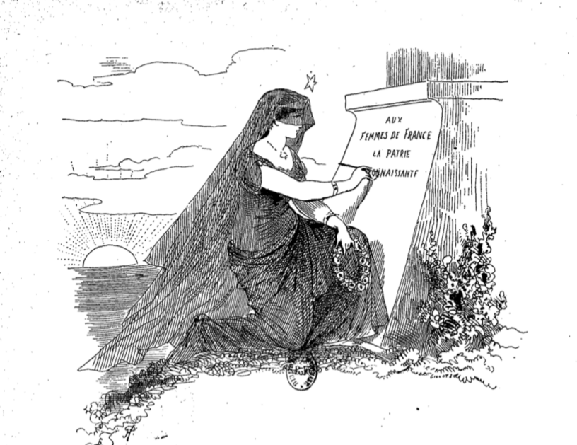 L’image de couverture est un dessin de Paul Hadol, qui illustre la table des matières du livre Les femmes de France. Elle est sur Gallica, là.